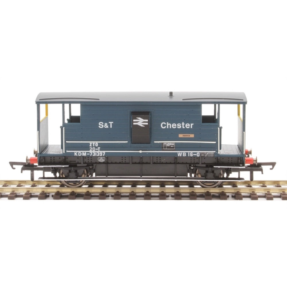 Until 1968, fully fitted freight trains were required by law to be carry a break van at the end. The brake van provided brake functionality to help slow the train as well as acting as a space in which the trains guard could carry out additional duties such as paperwork. As a result most brake vans featured a stove and desk on top of the brake apparatus.The London, Midland and Scottish Railway (LMS) built 2653 20 ton break vans between 1933 and 1947. These featured a wooden structure that spanned most of the frame, with open covered areas at either end to provide the guard with an excellent view of the train.