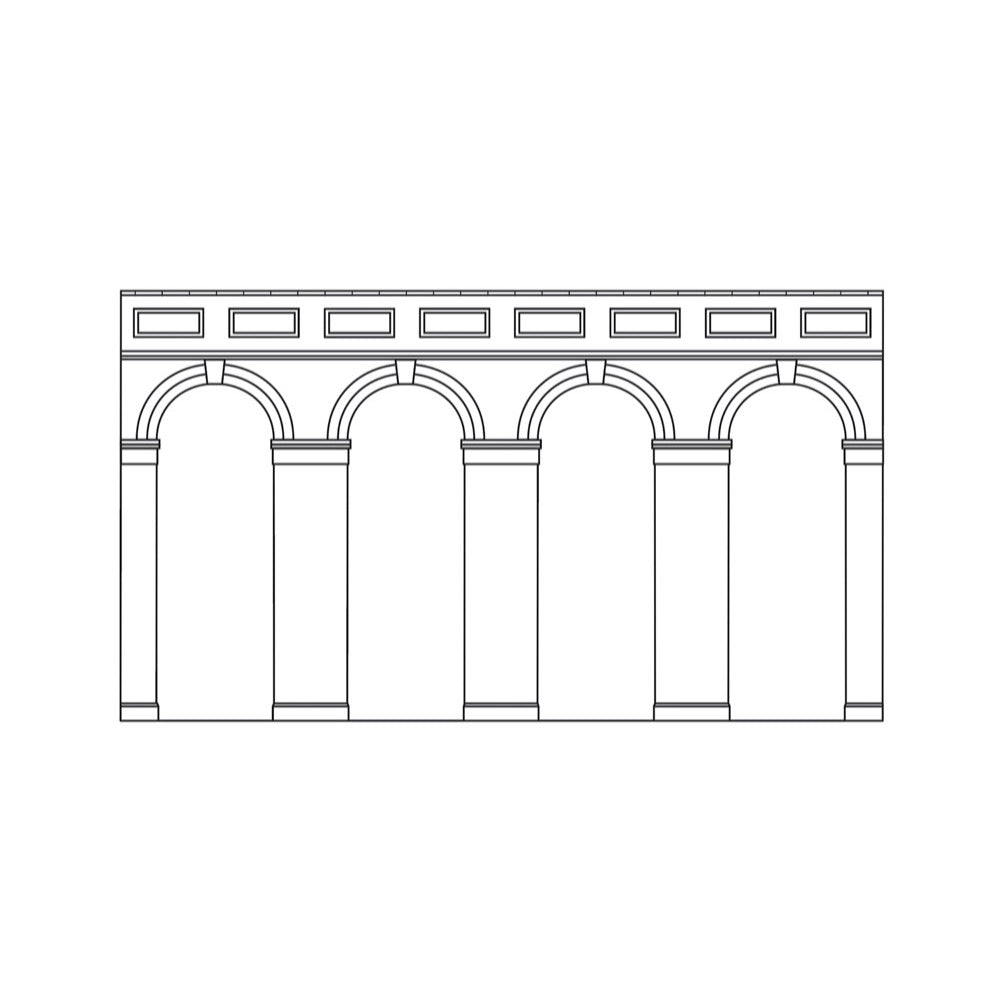 A pack of 2X scenic blue brick High Level Arched Retaining Walls as would be found lining an embankment or railway cutting.