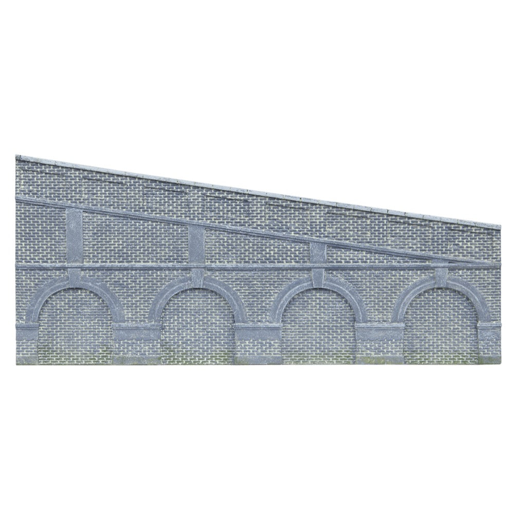 A pack of 2X scenic stepped blue brick Mid Level Arched Retaining Walls as would be found lining an embankment or railway cutting.