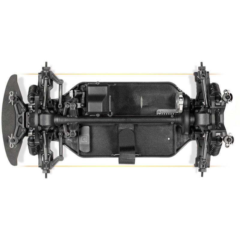 The Sport 3 main chassis is formed from a single piece of reinforced plastic and features the drivetrain tunnel molded right down the middle, just like a real car. It's a step beyond any plastic tub chassis car available today.