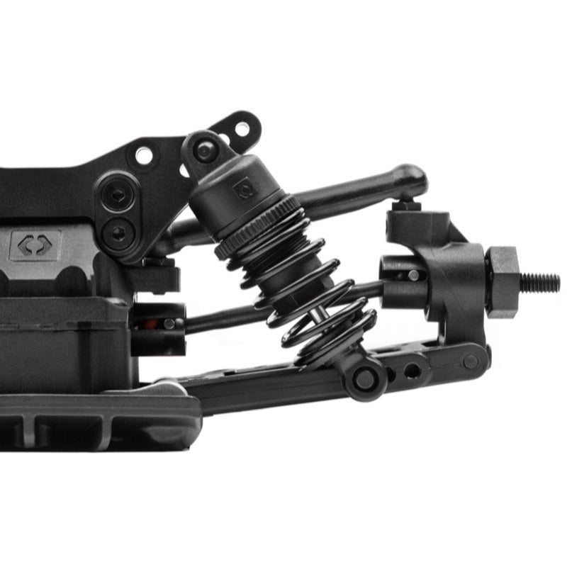The suspension of the Sport 3 uses the race-proven double-wishbone suspension design, similar to a full scale modern race car. You’ll be able to control the anti-squat and anti-dive of the front and rear arms using the standard pivot blocks, and the option parts allow you to adjust the sweep and toe angles. You'll also be able to easily change the roll center front and rear with the racing-style vertical ballstud mounting on both the inner and outer camber link mounts. Multiple shock mounting positions provide a full range of shock suspension angle adjustment to suit different road conditions.