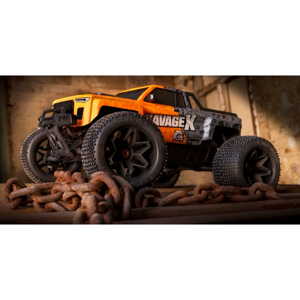 The Savage isn't messing around. Its heart pounds with the FLUX MLH-2200KV motor, capable of handling the full potential of a 6S LiPo setup (22.2 volts). The FLUX ELH-6S-capable ESC reigns over this electrifying chaos, ensuring precise control and explosive performance.
