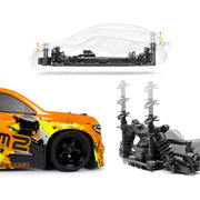 The Sport 3 chassis is the latest evolution of HPI Racing's on-road design. It features a completely sealed and highly efficient ball-bearing-supported shaft drivetrain for maximum efficiency combined with reduced maintenance. The suspension design is taken straight from scale and full-size racing technology, with a double wishbone suspension fitted with oil-filled coil-over shock absorbers. The fully sealed drivetrain means there are no exposed gears, belts or drivetrain parts to get stuck with rocks or dirt, and the durable suspension design allows you to tune the car for all types of driving conditions, from club racing to drifting. This is a fully-featured, ready-for-anything car!