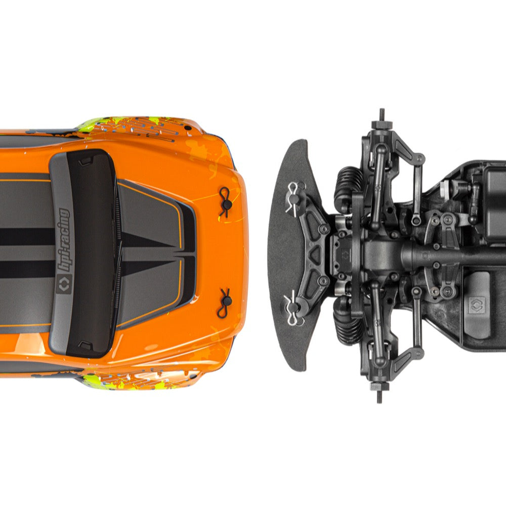You can fit any 1/10th scale touring car body from HPI Racing onto the Sport 3, from hot hatches to supercars, pick-up trucks to supertouring racers. All you need to do is adjust the body mounts front and rear to allow the wheels to fit underneath the body properly. A simple system using body pins holds the mounts in place, and you can fine-tune the fit to get the exact ride height you want.
