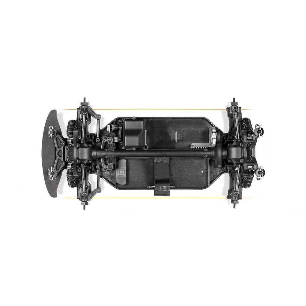 The main chassis is formed from a single piece of reinforced plastic and features the drivetrain tunnel molded right down the middle, just like a real car. It's a step beyond any plastic tub chassis car available today.
