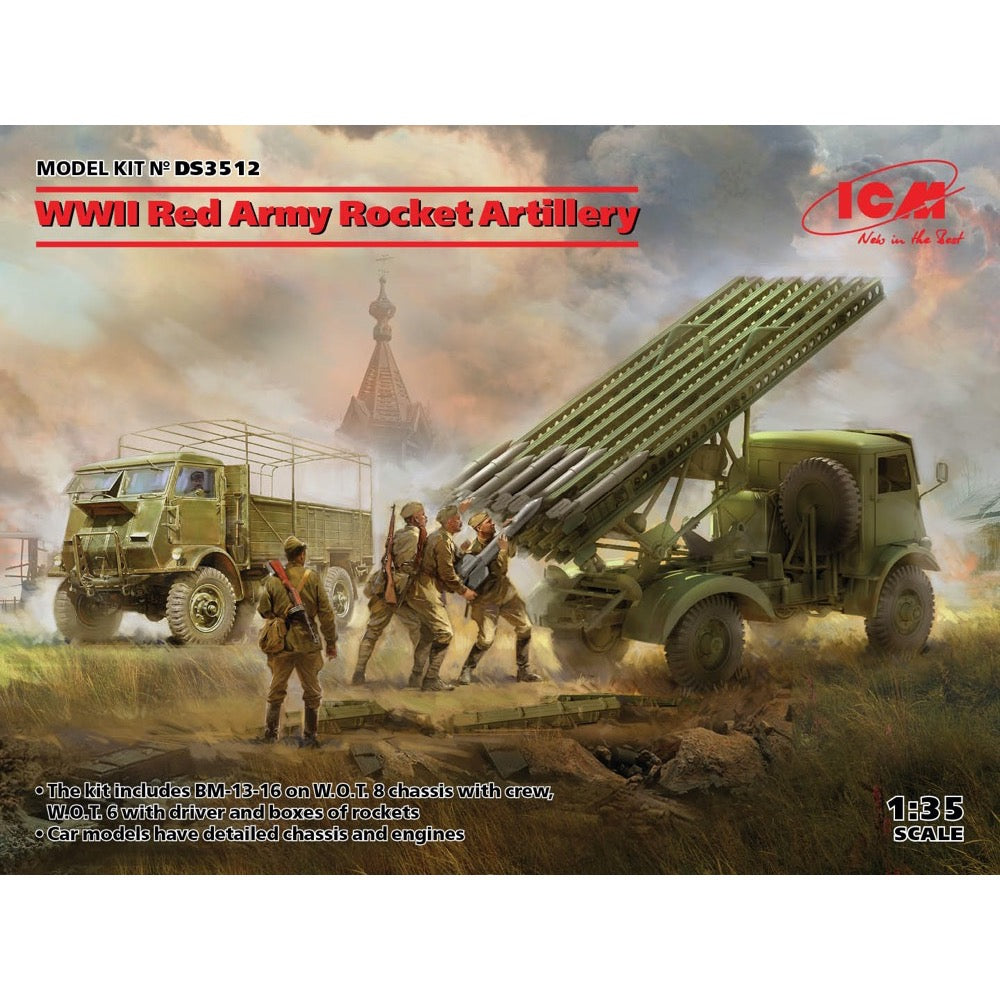 ICM DS3512 1/35 Red Army Rocket Artillery BM-13-16 on W O T 8 Chassis Model W O T 6 Soviet BM-13-16 MLRS Vehicle Crew RKKA Drivers
