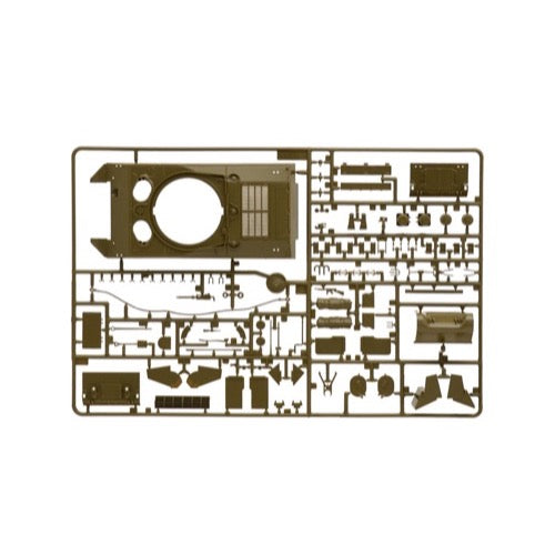 The M4 Sherman medium tank was the primary tank used by the United States during World War II. It has been produced in a significant number of units ant it formed the backbone of United Stated armoured forces during at those time. it has been produced in several variants and versions The production of the M4A3E8 versions started at the end of 1944. The M4A3E8, adopting the nickname Easy Eight, took several technical improvements enhancing the Sherman operational effectiveness. The 76mm M1 high velocity gun had been flanked by a new horizontal volute spring suspension (HVSS) system able to ensure a better driving condition and to guarantee a higher speed. The “Easy Eight” participated to the final stages of World War II and took active part in the Korean War.