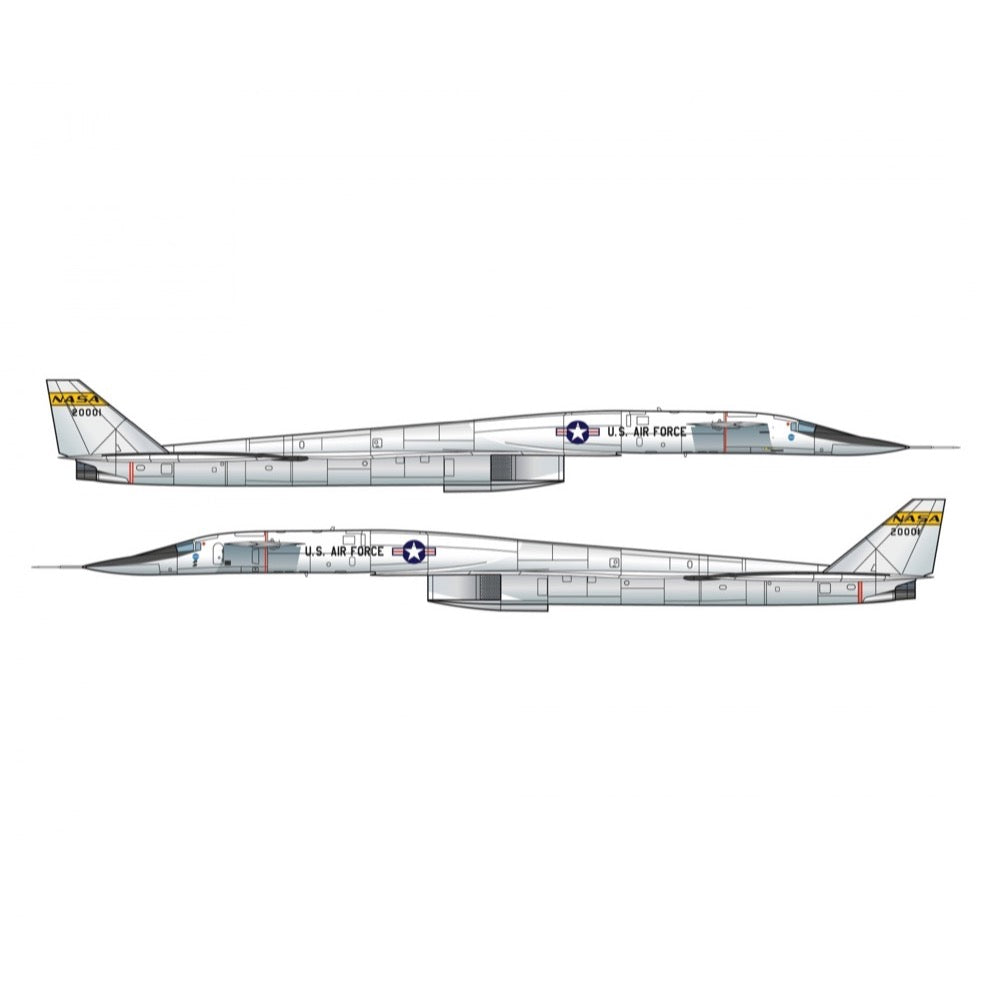 In the Cold War era the dream of every strategist was to own a bomber with the load capacity and autonomy of the B-52 able to fly faster than the B-58 and so the B-70 programme came into being. After years on the drawing board, and cutthroat competition between Boeing and North American Aviation, the latter’s design won the heated competition in December 1957, with an order for the first 30 aircraft to be in service by 1965. In 1959, however, it became clear that the still untested B-70 would not survive the new aerial combat scene technology and the programme was cut back to a minimum. Two prototypes were finally constructed, the first of which took to the air in September 1964, and the XB-70 Valkyries showed themselves able to fly at speeds exceeding Mach 3. Today they are considered by many scholars and airplane buffs to be the most beautiful aircraft ever constructed.