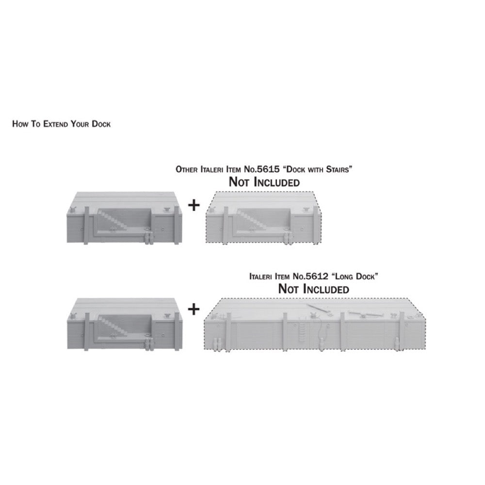 Use it as a standalone piece or in combination with 5612 "Long dock". Ideal complement for all Italeri 1:35 scale models.
