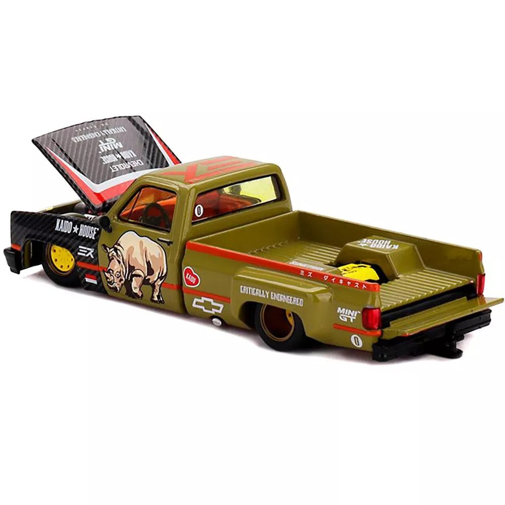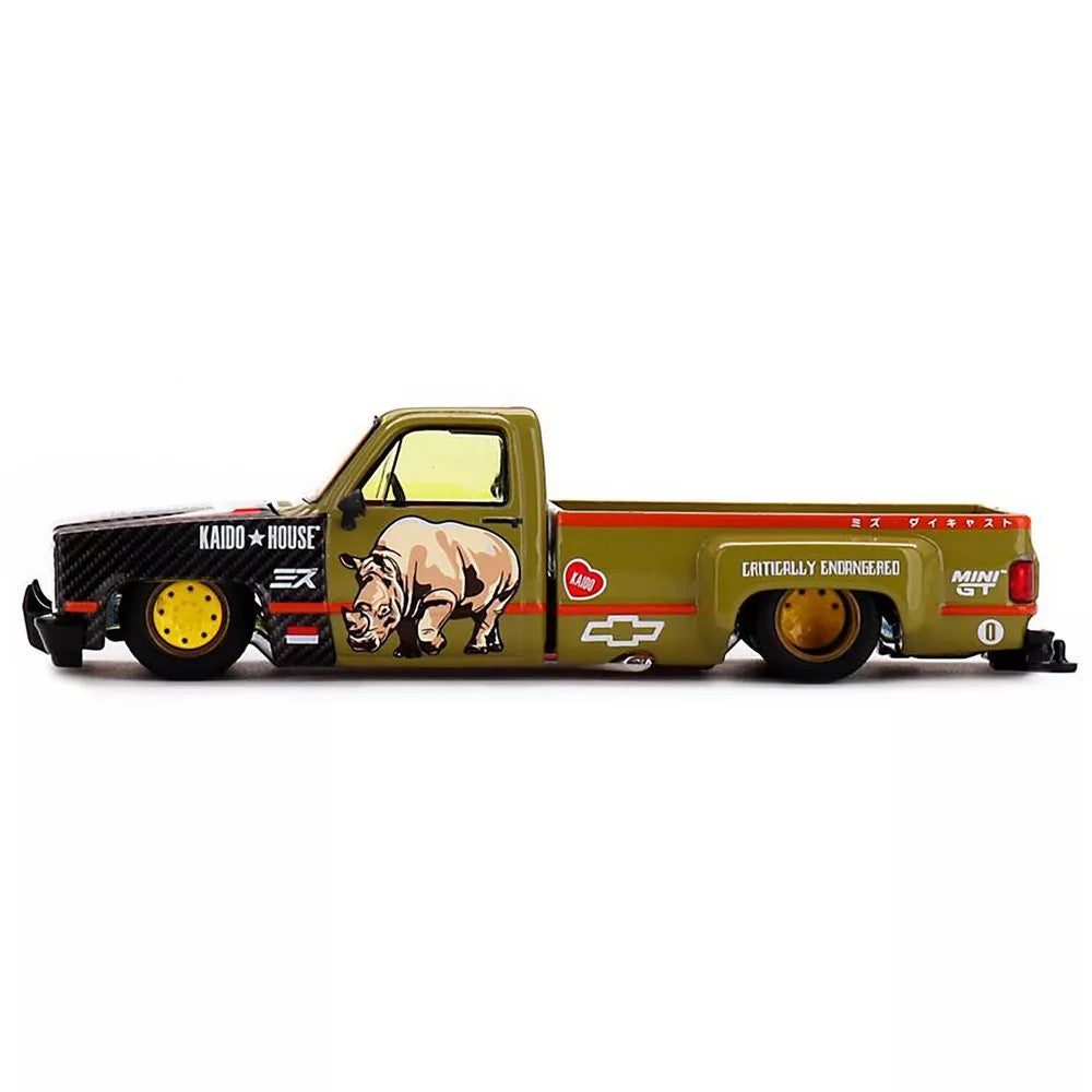 Experience the perfect blend of style and power with our Mini GT x Kaido House 1:64 Chevrolet Silverado “Sumatran Rhino”.