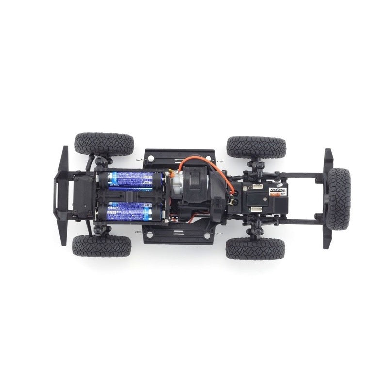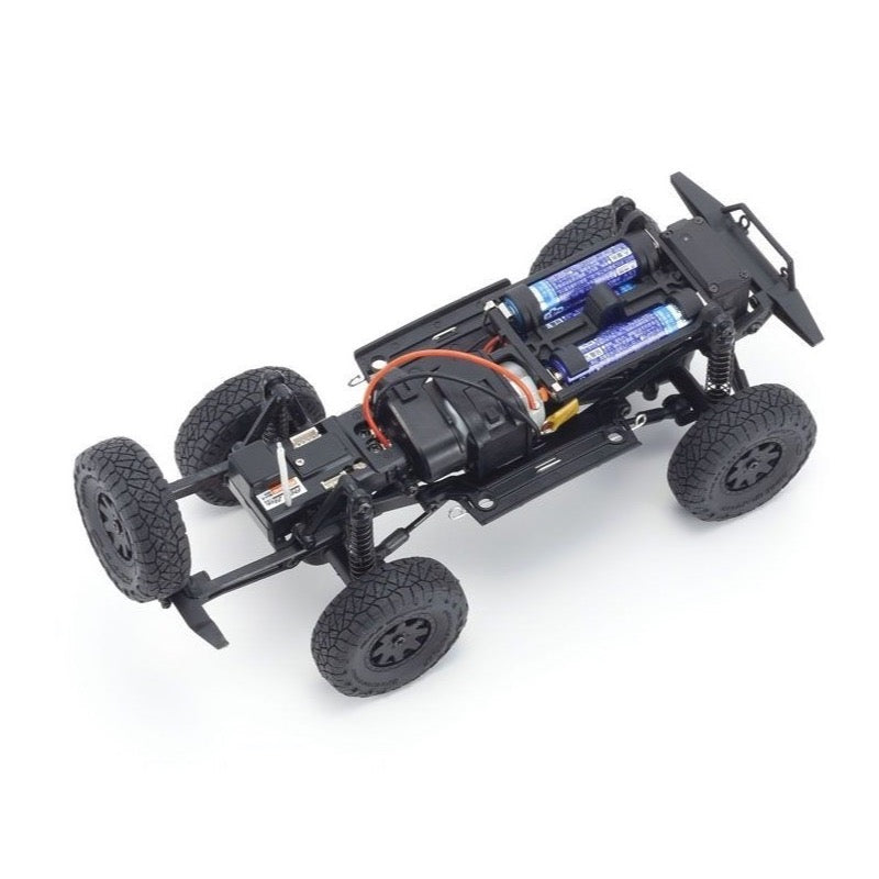In 2019 the world's most popular mini RC series, known as the Kyosho MINI-Z, celebrated more than 20 years of unmatched performance and scale realism in the hobby-grade RC category. The continuous pursuit of performance and evolution has led to the creation of a completely-new ‘MINI-Z 4x4’ design that delivers an all-new driving experience for RC fans of all stripes, with superior overall design, driving performance and high-quality injection-molded scale body construction. A significant feature of the MINI-Z 4x4 series is the greater emphasis of body detail and quality of finish that even surpasses existing benchmarks set by the MINI-Z. The body is also molded with thicker material to better resist crash damage from operation in rough terrain. Incorporating the same ladder- style frame of real 4WD vehicles, the MINI-Z 4x4 boasts a 3-link rigid axle suspension combining what would normally be two upper links into a single upper A-arm to deliver maximum suspension movement. A specially designed high-torque steering servo enables this machine to throw its elbows around in the hard terrain for excellent performance in the toughest rock-crawler conditions. The high-torque 130-size motor brings out the beast in the MINI-Z 4x4, specially geared to run well in the low to medium speed ranges common in crawling.