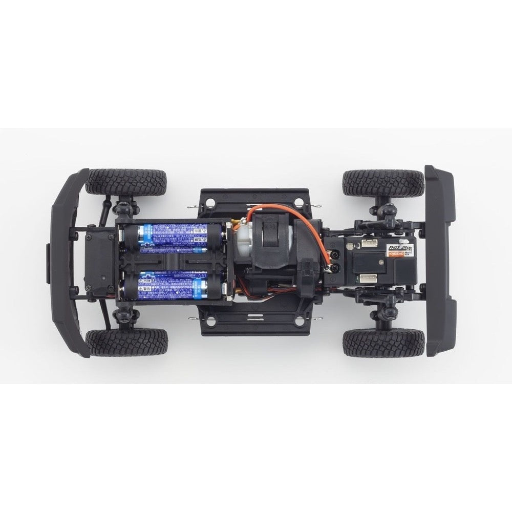 In 2019 the world's most popular mini RC series, known as the Kyosho MINI-Z, celebrated more than 20 years of unmatched performance and scale realism in the hobby-grade RC category. The continuous pursuit of performance and evolution has led to the creation of a completely-new ‘MINI-Z 4x4’ design that delivers an all-new driving experience for RC fans of all stripes, with superior overall design, driving performance and high-quality injection-molded scale body construction. A significant feature of the MINI-Z 4x4 series is the greater emphasis of body detail and quality of finish that even surpasses existing benchmarks set by the MINI-Z. The body is also molded with thicker material to better resist crash damage from operation in rough terrain. Incorporating the same ladder- style frame of real 4WD vehicles, the MINI-Z 4x4 boasts a 3-link rigid axle suspension combining what would normally be two upper links into a single upper A-arm to deliver maximum suspension movement. A specially designed high-torque steering servo enables this machine to throw its elbows around in the hard terrain for excellent performance in the toughest rock-crawler conditions. The high-torque 130-size motor brings out the beast in the MINI-Z 4x4, specially geared to run well in the low to medium speed ranges common in crawling.
