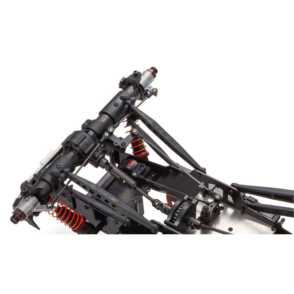 4WD chassis with 5-link suspension system produces outstanding drive efficiency and performance so you can enjoy hard driving on the roughest roads with supreme confidence. This Readyset model comes with R/C system pre-installed.