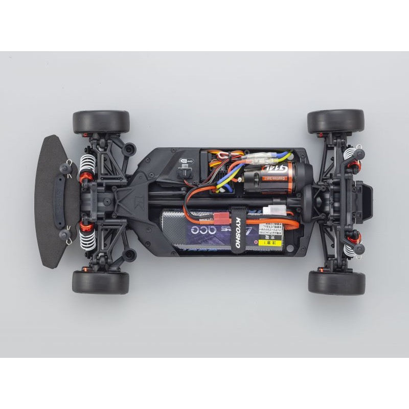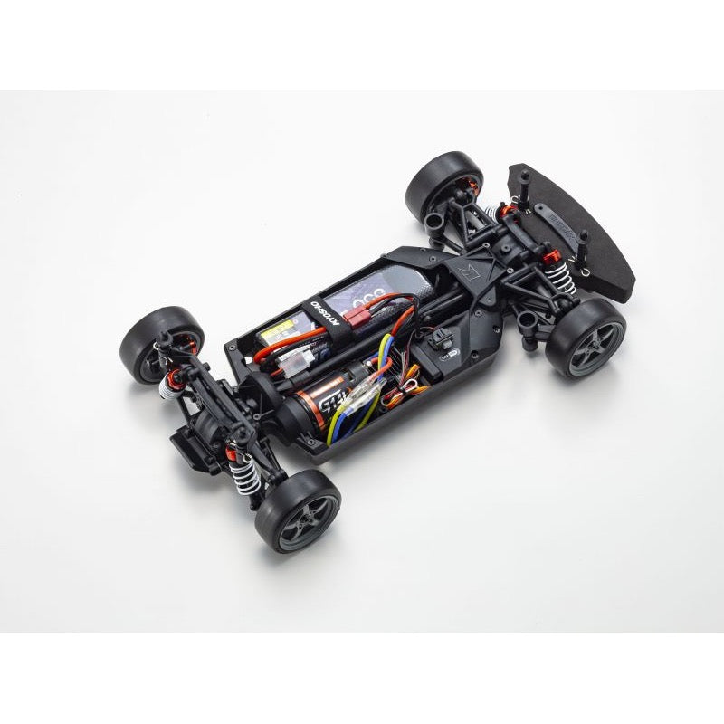 For the pure enjoyment of R/C car driving, the combination of a beautifully reproduced car body with the FAZER series chassis can’t be beaten. Kyosho has taken its standard touring car chassis and given it a full model makeover that has evolved performance to a new level. A simplified design with fewer parts has improved maintenance efficiency and reduced weight while core strength and rigidity has been increased through new materials and ribbing and stiffeners on front and rear. In addition, the symmetrical chassis design synergizes excellent front-rear balance through the suspension with responsive control, irrespective of power source. Featuring slipper clutch, front & rear gear differentials, oil shocks and full ball bearing specs, the high durability and impact resistance allows drivers to unleash the full potential of the chassis. Brake disc wheel hubs with two different offsets (0mm, +5mm) provide compatibility with 190mm and 200mm width body styles and allows the wheelbase to be adjusted to 274mm by replacing some parts (sold separately) for compatibility with other 1/10 scale body styles, in addition the body included. The Readyset package comes fully assembled and includes everything except charger and battery for the chassis, and batteries for the transmitter.