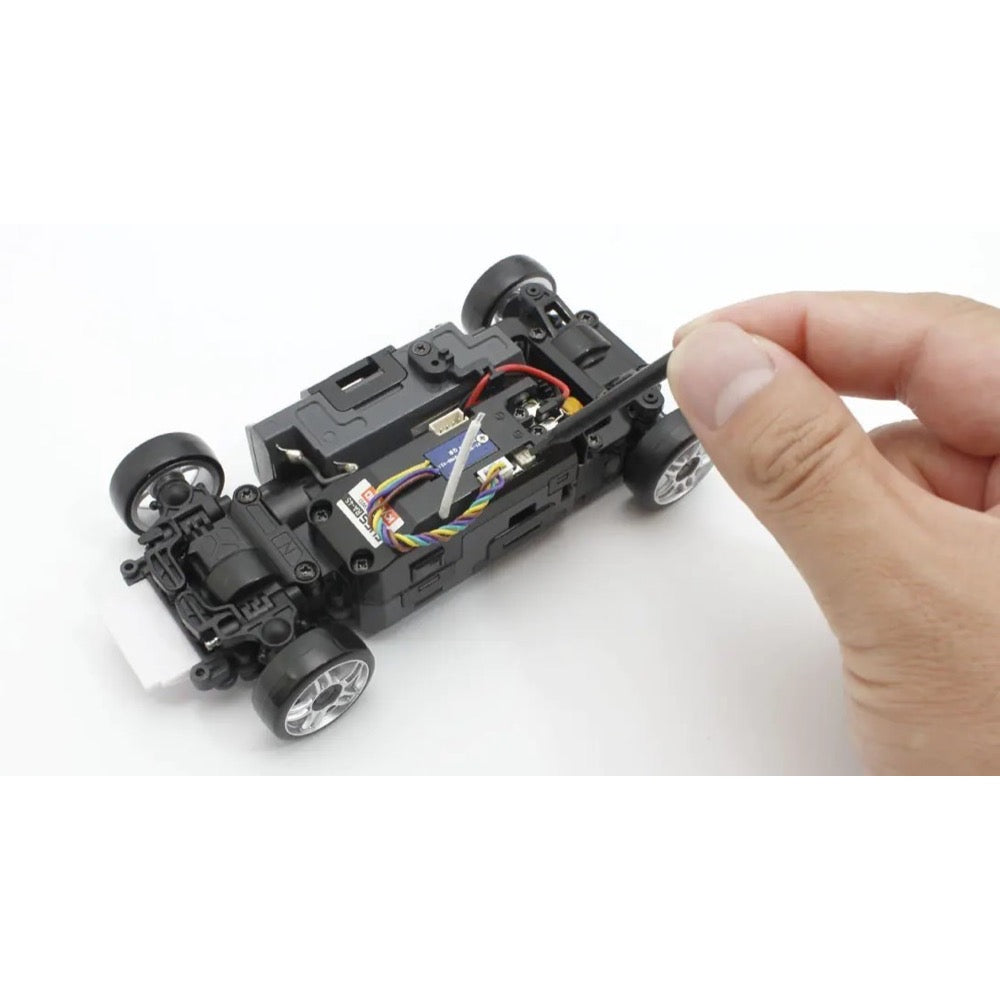To bring its dynamic performance to even more drivers, the MINI-Z AWD is now available in a Readyset. The MA-020 chassis features VCS (variable camber suspension) on the front that optimizes camber change with suspension stroke and a specially designed circuit board. The chassis design allows space for installing the optional gyro unit(sold separately:No.MZW446/MZW711). The gyro can be adjusted by turning a small volume on the chassis to reflect the amount of steering correction in response to changes in chassis posture, allowing beginners through to experts to drive to their full potential. Fully fitted out with precision ball bearings, the high drive efficiency of the MA-020 chassis is complimented in the Readyset by the unique scale body and 2.4GHz Syncro KT-531P R/C system that requires no frequency band setting; all at a great value price. Simply set the batteries to enjoy the thrill of drift driving with the included set of drift tires. The chassis is compatible with nearly all ASC MINI-Z bodies (additional parts maybe required for some body styles). The MINI-Z AWD promises a unique world of dramatic racing action for you to experience and enjoy.