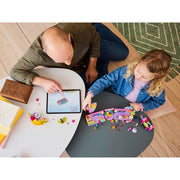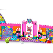 This toy for girls and boys is a disco party playset and lots more! With Gabby, Daniel James ’DJ’ Catnip, Kitty Fairy and MerCat characters and a variety of music party toys – including a push-along party bus with a built-in keyboard, a rotatable dance floor, guitar, 2 microphones and a sparkling disco ball – the stage is set for endless imaginative play! Accessories include balloons and roller skates for the roller disco, popcorn and 2 glasses full of slush ice for the chill-out zone, and a catapult and cans for the knock-down game. There’s a cake for Gabby and packages with gifts inside delivered down the playset’s slide. The set comes with a large Starter Brick to help kids get building. A colorful picture-story guide provides intuitive instructions.