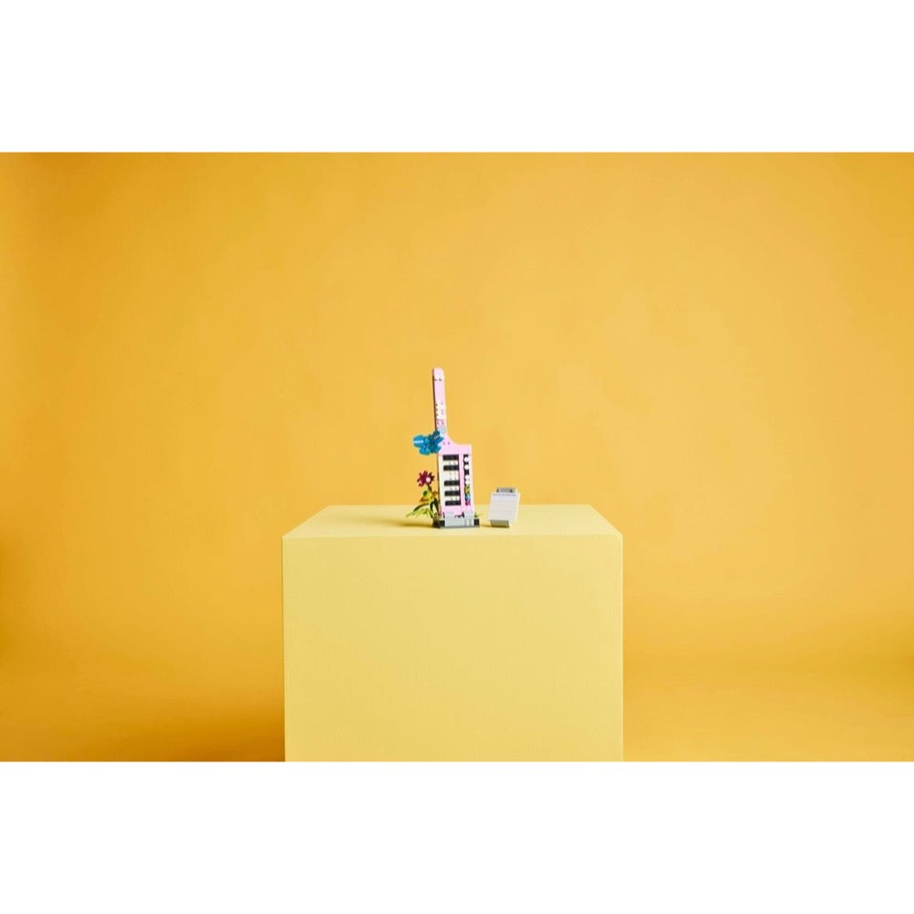 Kids build a vintage Typewriter with Flowers toy, then rebuild it into a keytar toy or flowerpot in a LEGO® Creator 3in1 set.