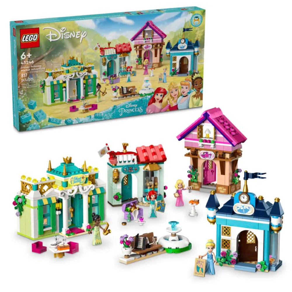 Captivate and entertain Disney Princess fans and kids aged 6 and up with this detailed LEGO® ǀ Disney Princess: Disney Princess Market Adventure (43246) construction playset. The box contains 4 buildable toy buildings, one with a small storage space on top and a small model with a flowerpot, bench and fountain. It also includes Tiana, Aurora, Cinderella and Ariel LEGO ǀ Disney mini-doll figures, plus 2 collectible rings with 4 decorations that can be changed again and again. Kids can design a market adventure then role-play endless stories or imagine new escapades with loads of play starter accessories.