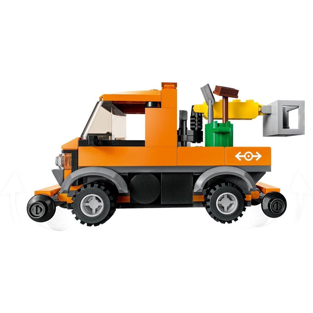 • Features and functions – The road-and-rail maintenance truck comes with fold-down wheels for traveling on the tracks, while the bus has an accessible interior with seating for 6 minifigures