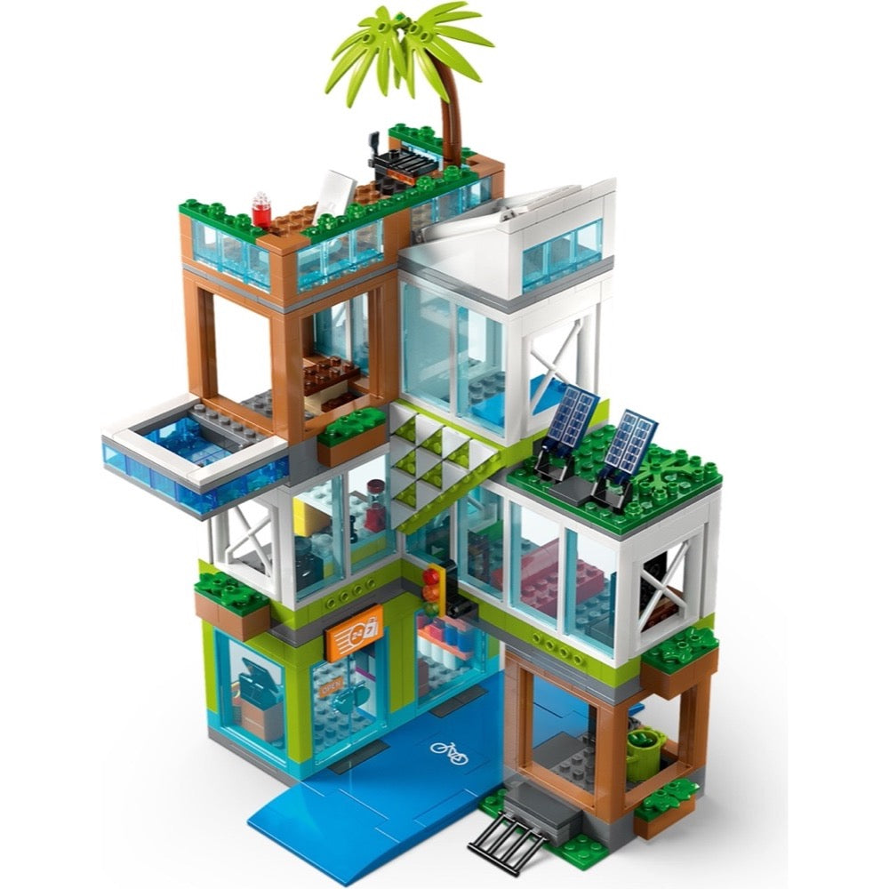 Premium-quality set featuring a modern Apartment Building with detailed rooms for imaginative play, plus a mobility scooter, bike and 6 minifigures.