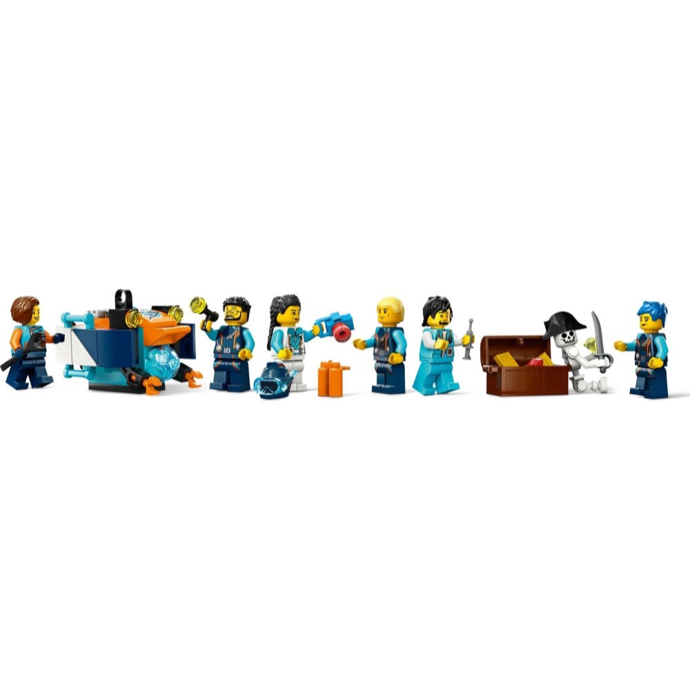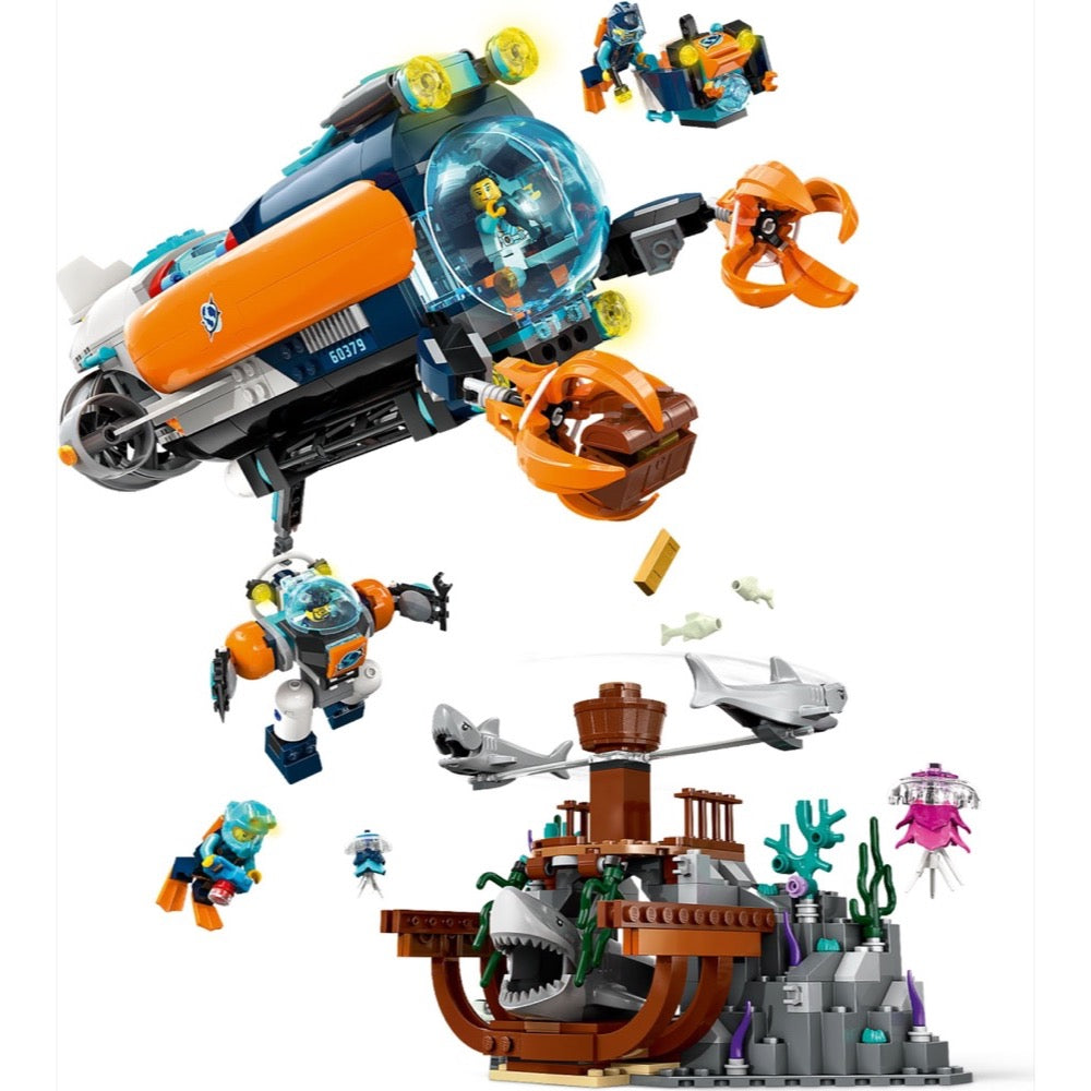 • What's in the box? – All kids need to build a deep-sea submarine, drone, diving suit, shipwreck setting and 6 explorer minifigures, plus 1 skeleton, 3 shark, 2 jellyfish and 4 fish figures