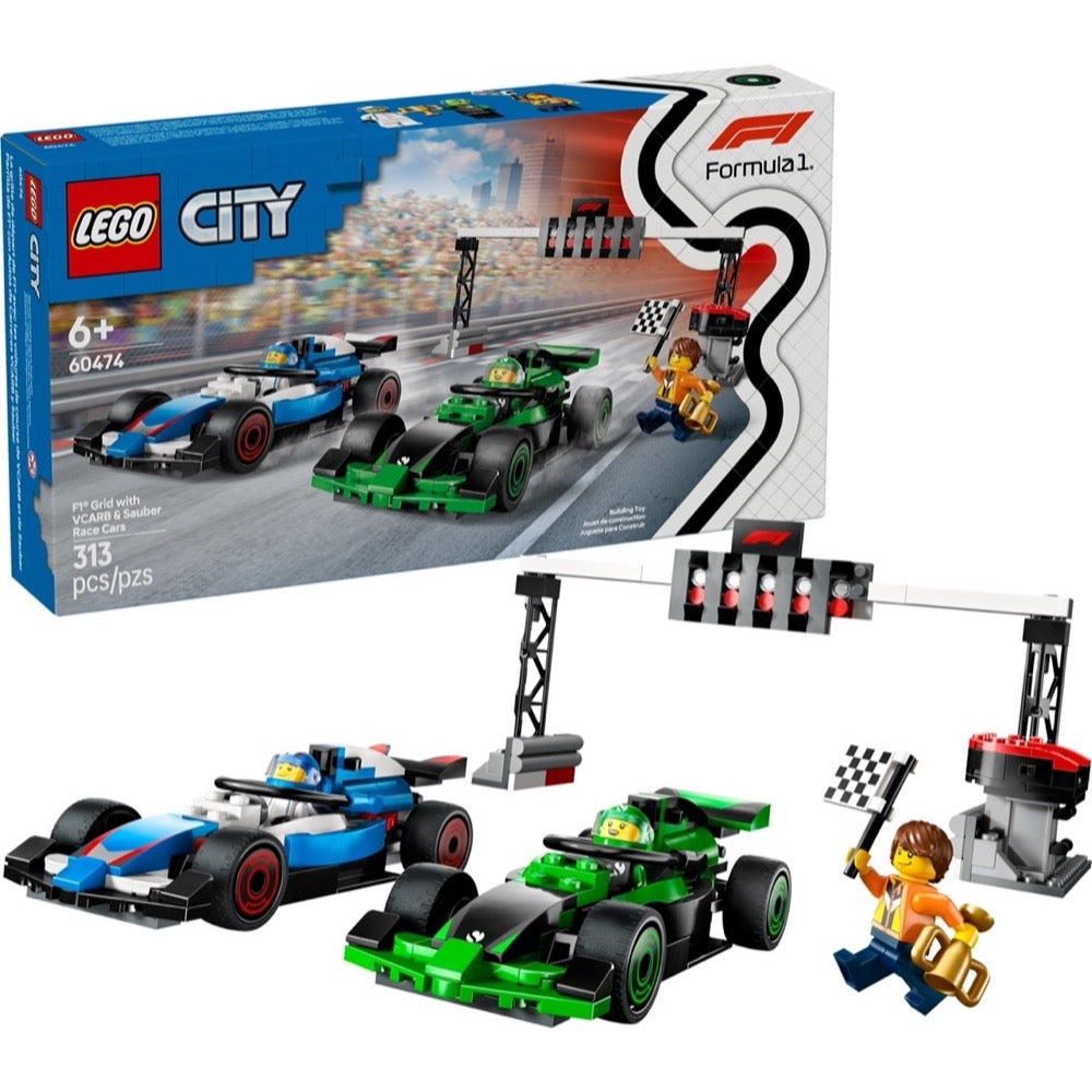 • LEGO® City F1® toy vehicle set – Get kids’ race play off to a flying start with the LEGO City F1 Grid with VCARB \u0026 Sauber Race Cars building set for ages 6 and up