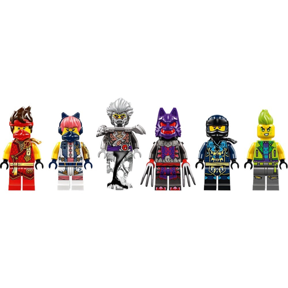 • 6 NINJAGO® minifigures – This ninja toy for kids includes ninja Kai and Sora, in their tournament armor, who battle Cinder, a Wolf Mask Warrior and, exclusive to this set, Evil Jay and Tox