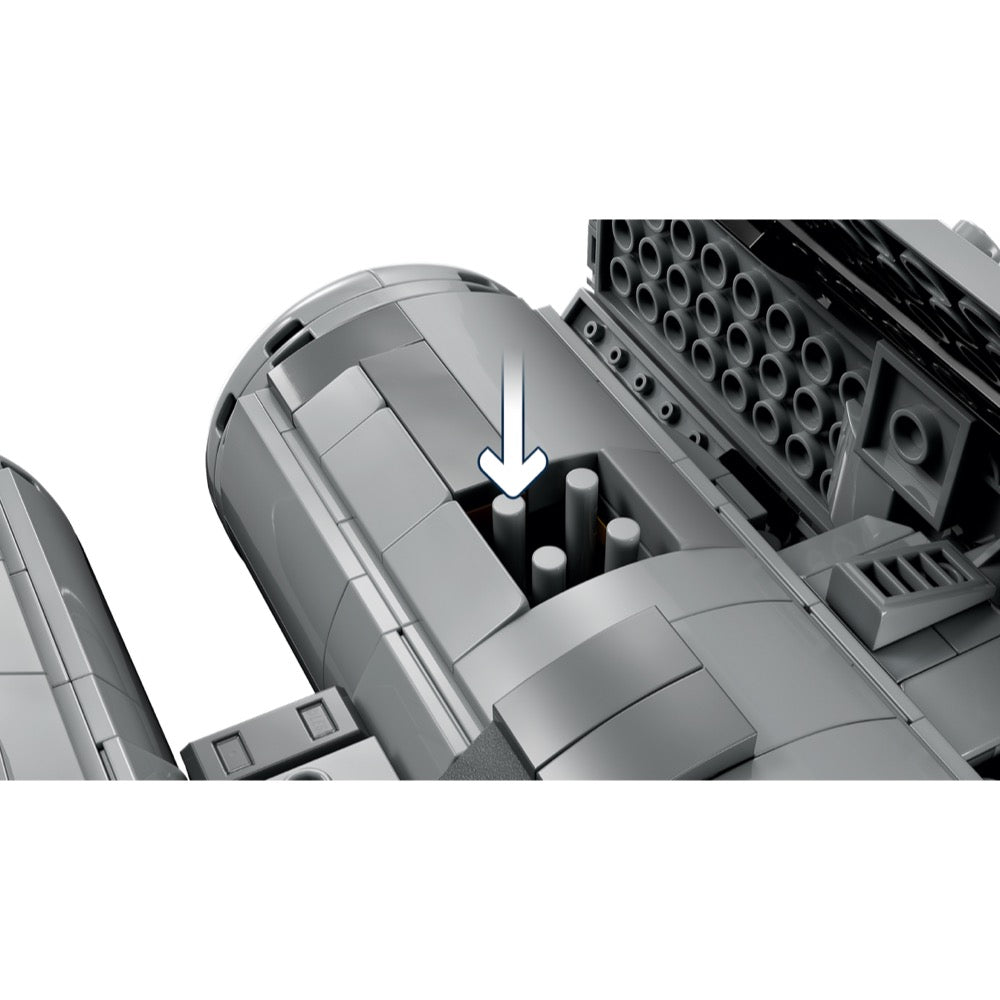 • Cart to transport torpedoes to the TIE Bomber – The cart has space for a LEGO® minifigure driver and for 2 torpedoes at the back