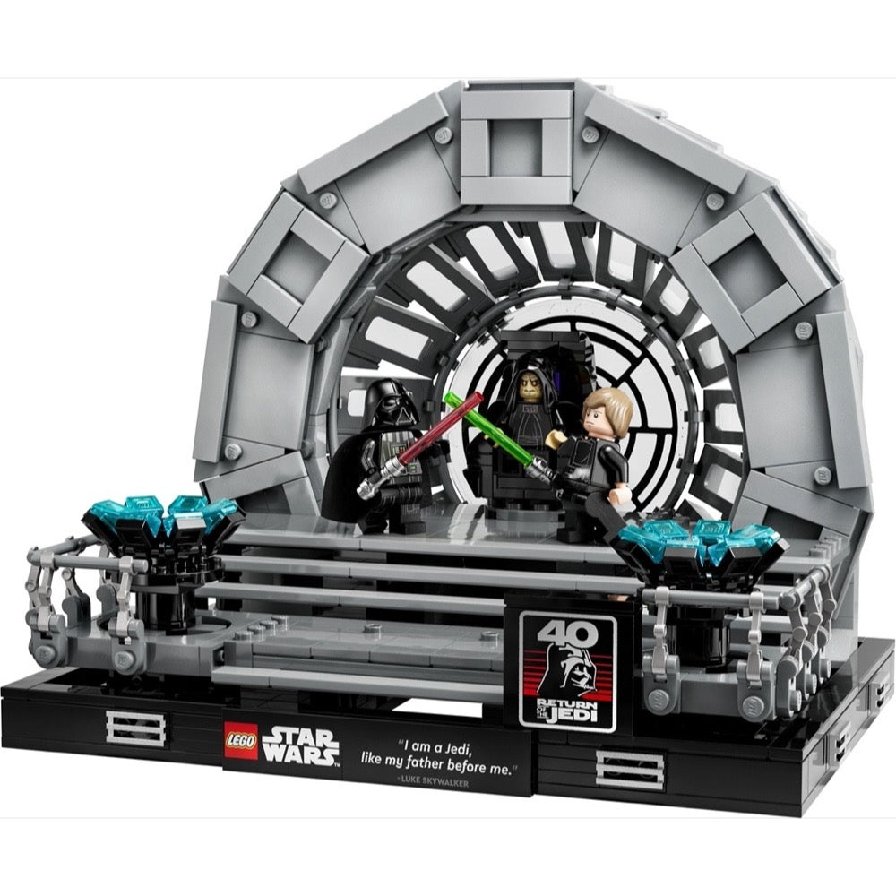 Relive the dramatic climax of the classic Star Wars™ trilogy with this Emperor’s Throne Room Diorama (75352). It is packed with authentic details, including a Death Star window element designed especially for this set and Emperor Palpatine’s rotating throne. Capture the action with Darth Vader and Luke Skywalker LEGO® minifigures, each with lightsabers, and Emperor Palpatine with 2 Sith lightning bolt elements. This build-and-display model is completed with a plaque featuring a famous Luke line(“I am a Jedi, like my father before me.”) and a plaque with the Star Wars: Return of the Jedi 40th anniversary logo.