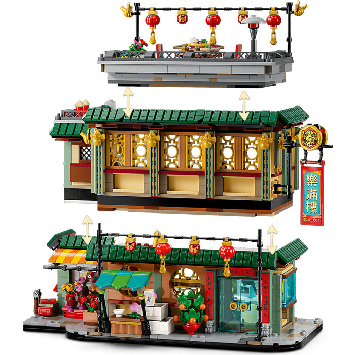 Capture the joy of a LEGO® Spring Festival Family Reunion Celebration (80113) with this restaurant playset for kids aged 8 and up. The buildable toy model of a traditional Chinese-style restaurant is designed for easy access and play with the authentically detailed kitchen, reception area, dining room (including a buildable karaoke machine) and bathroom. The LEGO restaurant’s rooftop dining area is perfect for a romantic dinner to celebrate the Year of the Dragon, with a table for two, buildable patio heater, flowerpot, hanging lanterns and fireworks. There is also a buildable flower store, dim sum toy cart and street food cart to inspire creative play.