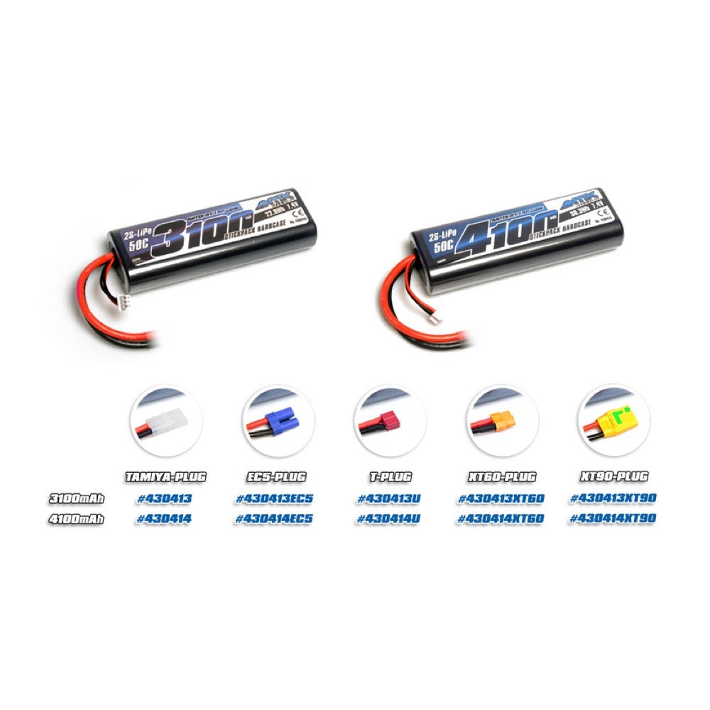 The 50C high-performance batteries are available with all common connectors and an XH balancer connection.
