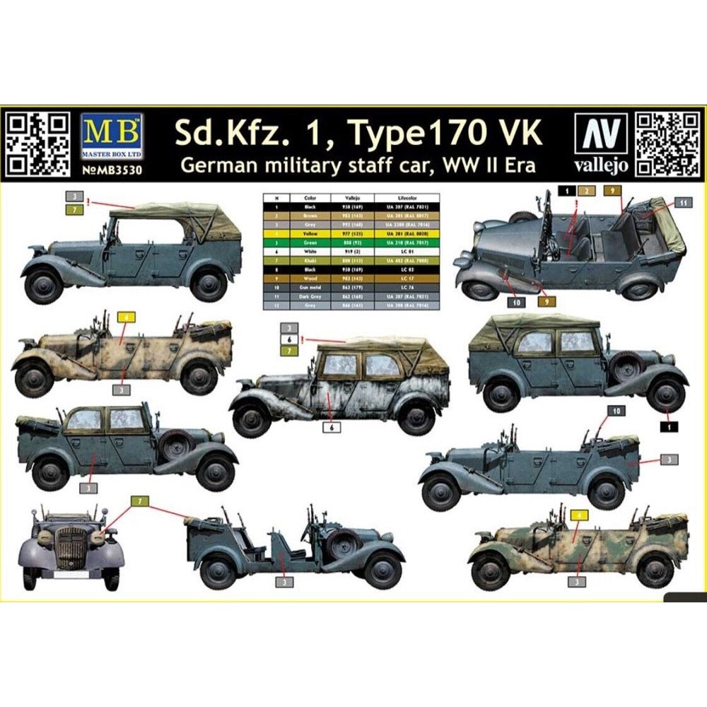 Master Box 3530 1/35 Kfz 1 Type 170VK German Military Staff Car WWII Era