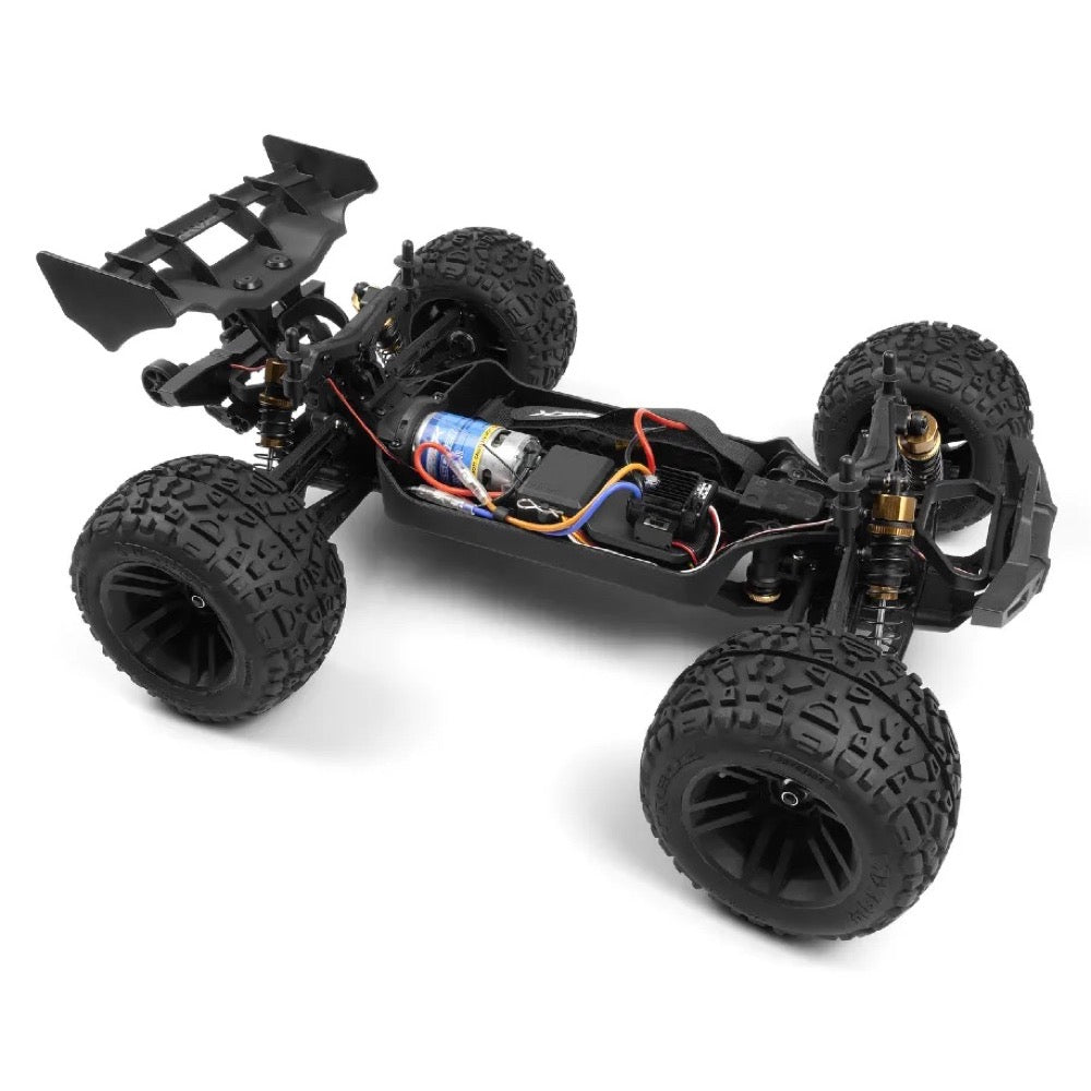 The Quantum2 XT is the authentic next evolution following the successful launch of the Quantum2 MT. Retaining the same reimagined Quantum2 chassis, it boasts an impressive Truggy aesthetic. Key features include the HD wing mount with an impact-absorbing top, designed to lessen the shock experienced during crashes, seamlessly integrating with the Quantum2 rear bumper and adjustable wheelie bar.