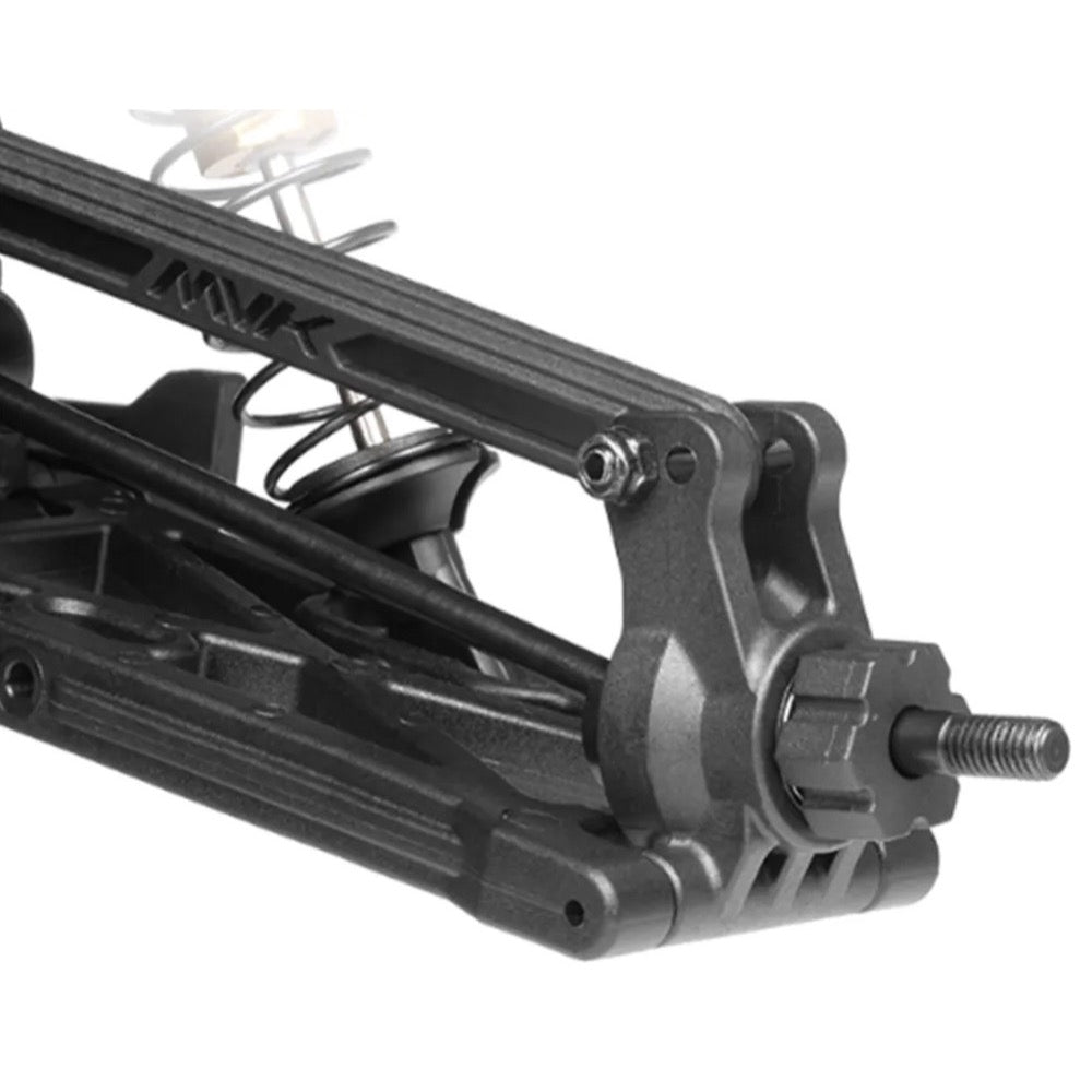 At the rear end, it’s the same story: super thick lower and upper suspension arms for dual-wishbone action front and rear. Only the best designs for Maverick RC drivers! And just check out the little touches you won’t see unless the wheel is removed: lightened plastic wheel hubs and even optional camber link mounts on the one-piece upright!
