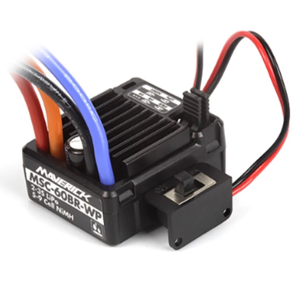 The MSC-60BR-WP is the ideal partner for the 550 brushed motor fitted in the Quantum2 XT! You can use a variety of battery types and sizes with it, from 6-7 cell NiMH or 2S batteries. It’s fitted with an XT60 plug, and a plug adapter is included to let you use appropriate batteries fitted with the popular white RC plug. It’s also waterproof so it’s great for blasting through mud and puddles! Please note: electronics are not designed for submerged operation. Be sure to rinse off any dirt or salt water with clean water immediately. Check the motor to make sure no water or dirt is inside, spray with electric motor cleaning spray and let dry fully before driving again.