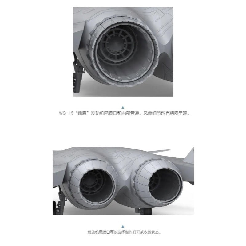 • The engine nozzle & internal parts of the WS-15 engines are represented.