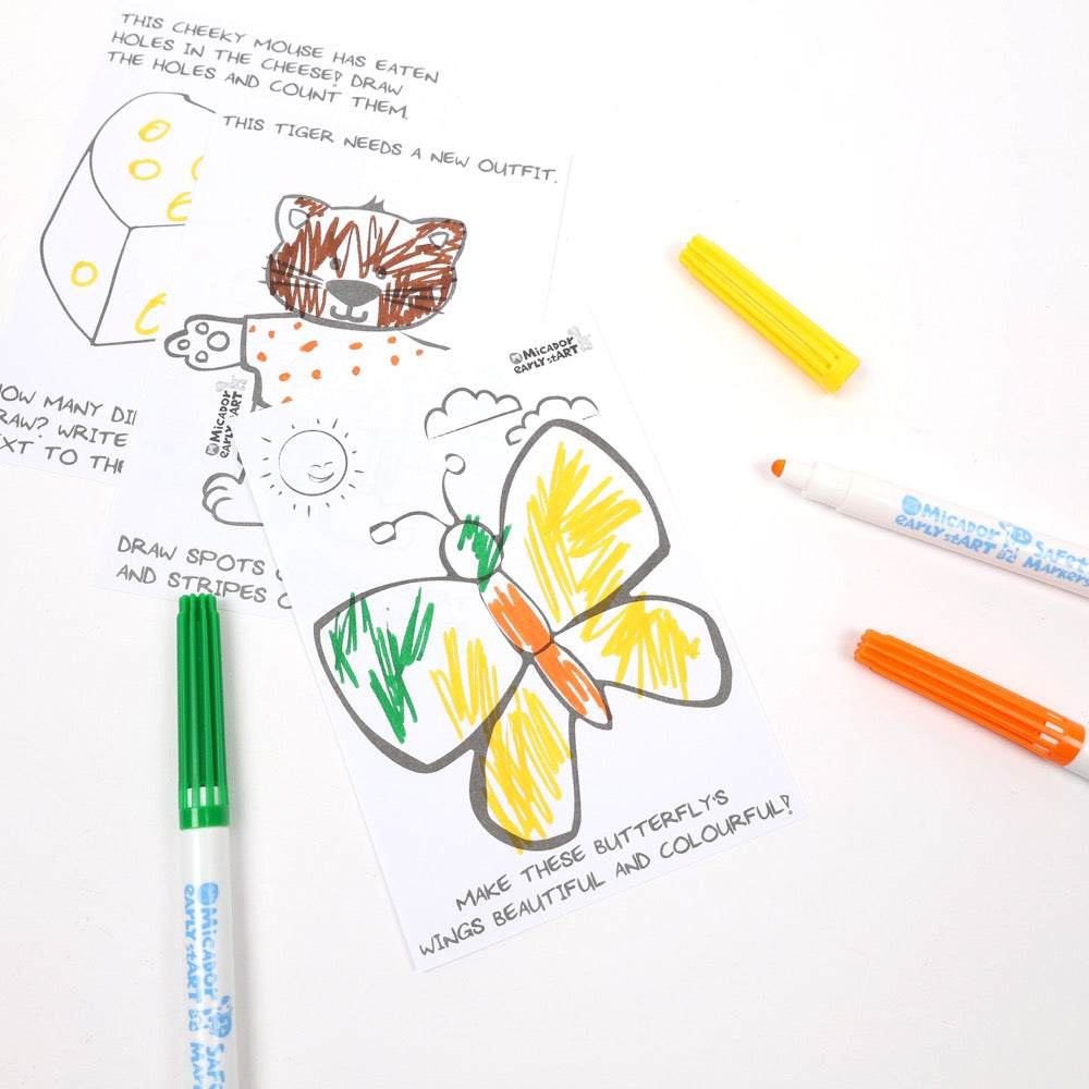 Let growing minds develop their creativity with early stART Safety Markers. Designed specifically for children as young as 1 year old, the markers are safe, easy-to-use and contain Super-Washable Plus ink (that stays bright on paper!) for mess-free play. Markers have secure end caps and ventilated safety lids for parents’ peace of mind and a child safety nib that is virtually indestructible. Available in a pack of 8 or a handy class pack of 64, ideal for the art room, parties or home!