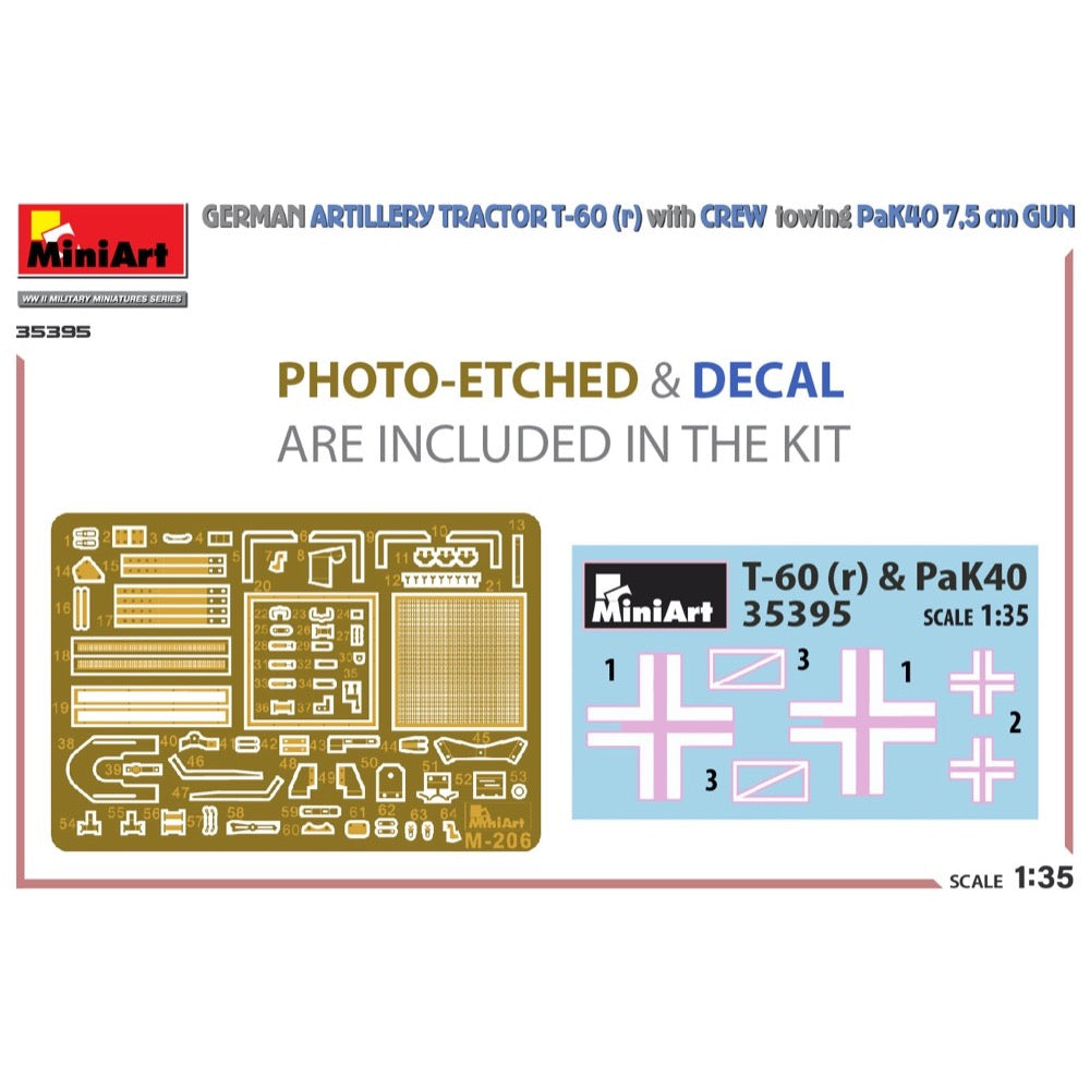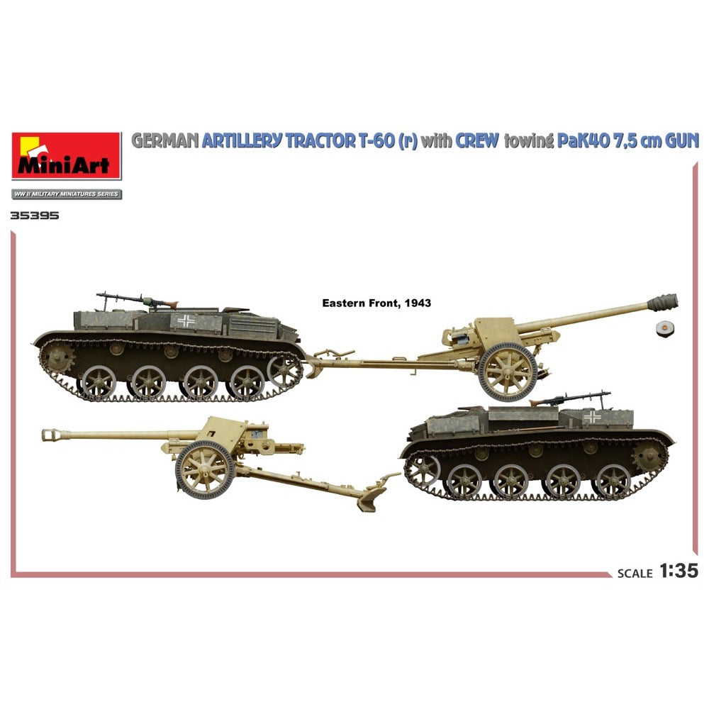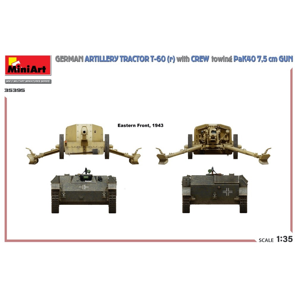 MiniArt 35395 1/35 German Artillery Tractor T-60(r) with Crew and Towing PaK40 7.5cm Gun