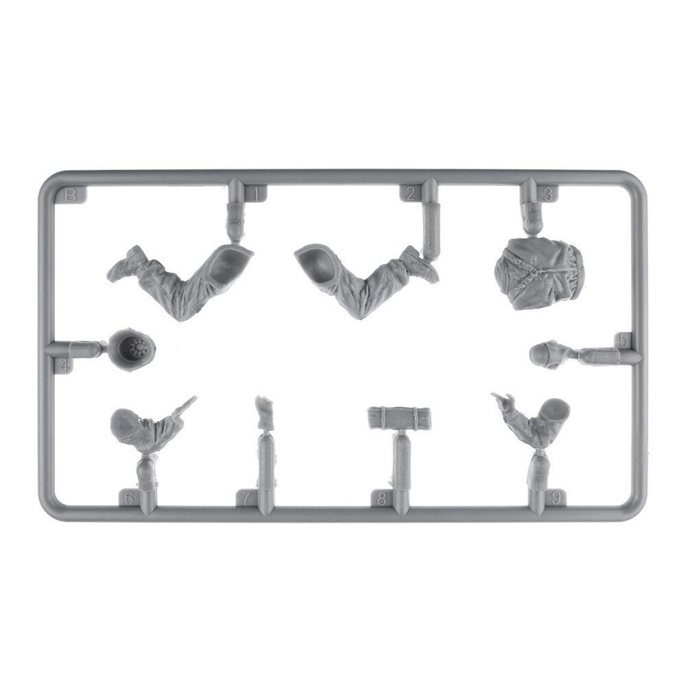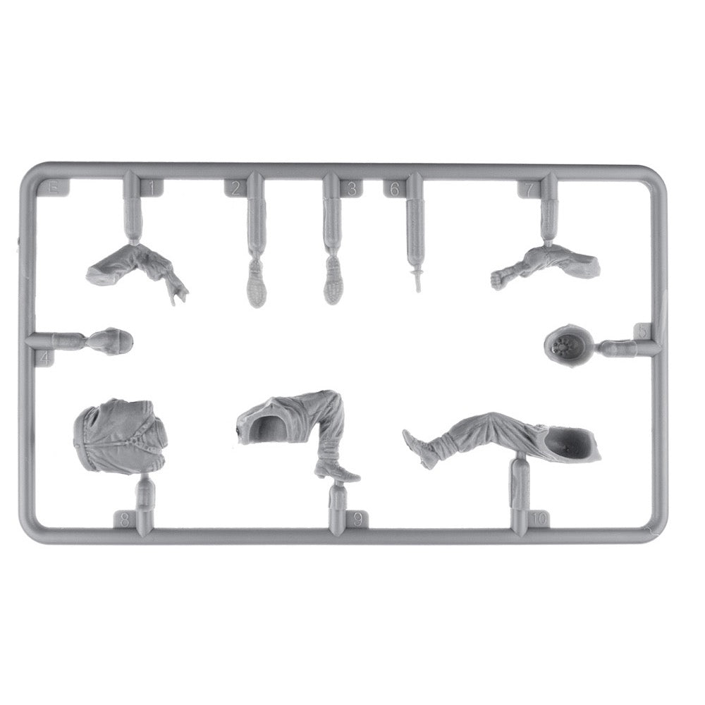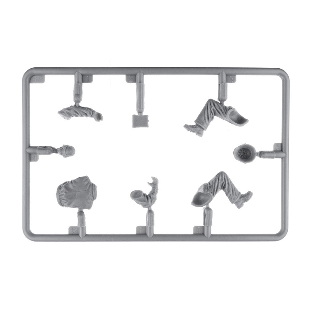This kit features four detailed figures of German tank riders, complete with resin heads and weapons.