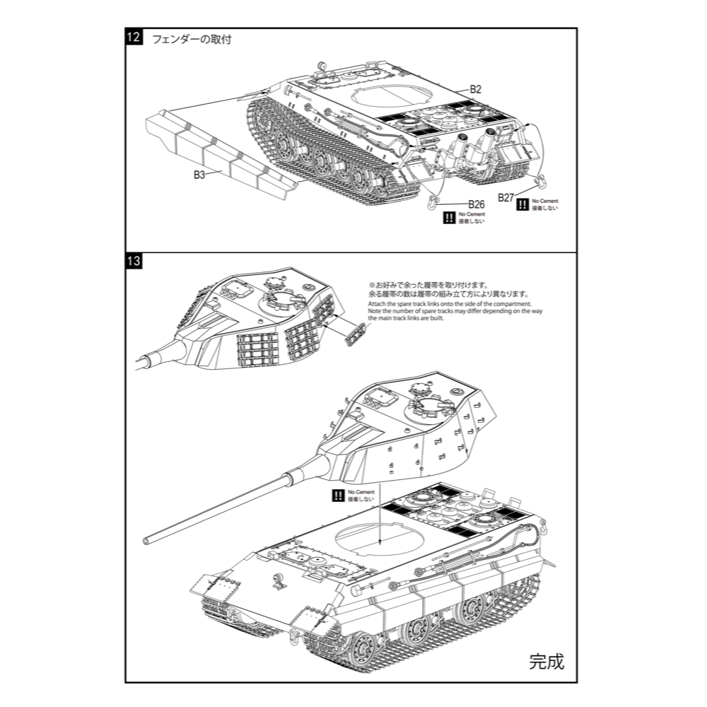The E-50 Standardpanzer was intended as a standard medium tank, replacing the Panther and Tiger I and the conversions based on these tanks. The E-50 hull was to be longer than the Panther – in fact it was practically identical to the Königstiger (Tiger II) in overall dimensions except for the upper and lower glacis plate layout. Compared to these earlier designs however, the amount of drilling and machining involved in producing these Standardpanzer was reduced drastically, which would have made them quicker, easier and cheaper to produce, as would the proposed conical spring system, replacing their predecessors' torsion bar system which required a special steel alloy.