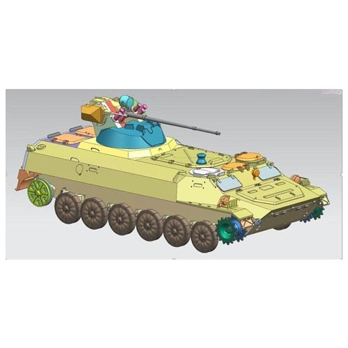 Unassembled plastic model kit in 1/72 scale of a Soviet MT-LB personnel carrier, in a Russian upgraded variant 6MB fitted with a BTR-82A turret, armed with a 2A72 30mm autocannon and co-axial PKT 7.62mm machine gun.