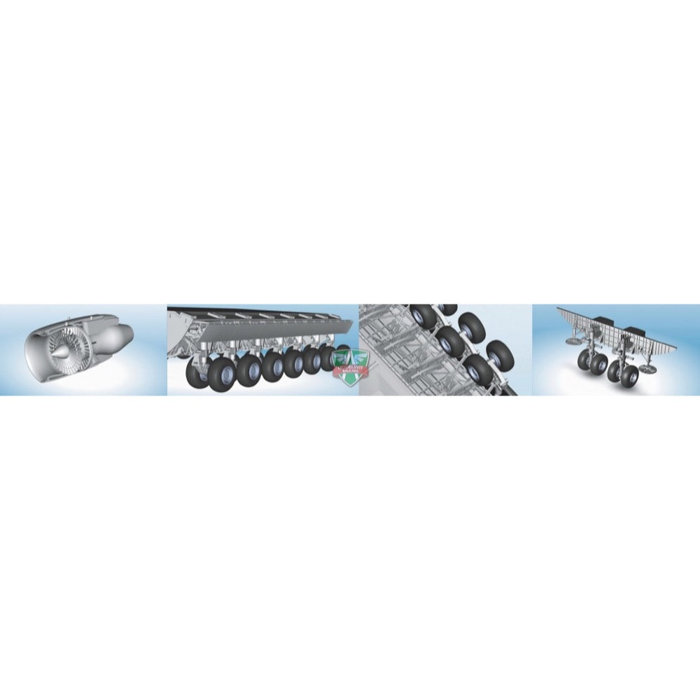 The first and the only airplane was built at Kiev Mechanical Plant in 1988. The An-225’s design succeed many technical features from An-124, for example: fuselage has the same cross sections(but being longer), wing console was pretty the same, landing gear used same scheme, but having increased quantity of wheels (32 pcs). The plane was powered by 6 D-18T engines (the same type used in An-124). The single vertical stabilizer, being common in transport airplanes aerodynamic schemes was changed to a twin tail with an oversized, swept-back horizontal stabilizer. The twin tail was essential to enable the plane to carry large, heavy external loads that would disturb the airflow around a conventional tail. Unlike the An-124, the An-225 was not intended for tactical airlifting and was not designed for short-field operation.