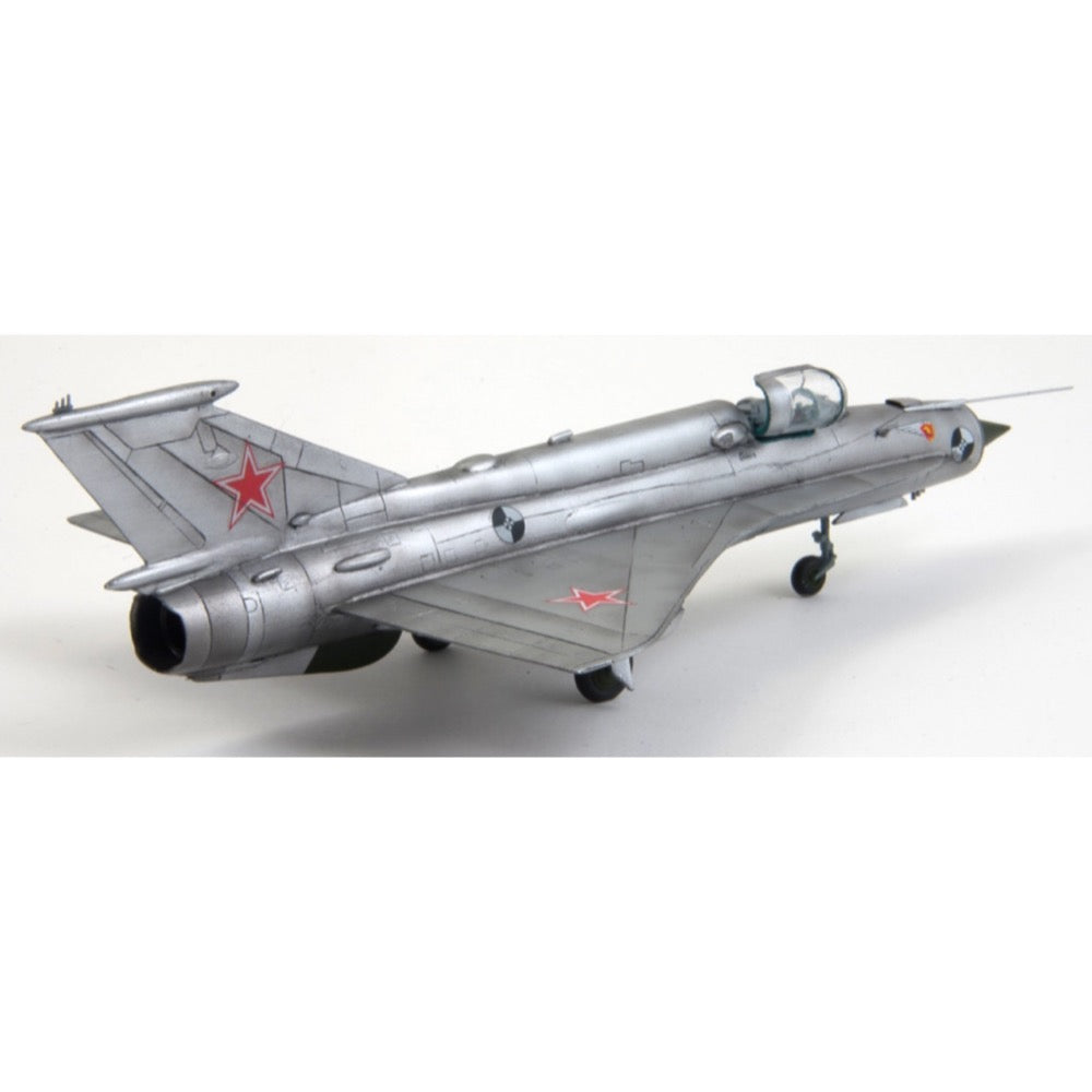 The Mikoyan-Gurevich MiG-21 NATO reporting name: Fishbed is a supersonic jet fighter and interceptor aircraft, designed by the Mikoyan-Gurevich Design Bureau in the Soviet Union. Its nicknames include: "balalaika", because its planform resembles the stringed musical instrument of the same name; "Ołówek", Polish for "pencil", due to the shape of its fuselage, and "Én Bạc", meaning "silver swallow", in Vietnamese.