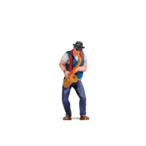 Tom is passionate about playing the saxophone. Not just because he heard it’s one of the instruments girls like, but also because he would like to play in a jazz band sometime. Today, he is standing on stage in a small bar to perform a solo in jeans, a white T-shirt and a vest. Sunglasses and a black hat are a must, of course! Later on, after getting a whisky from the bartender and when the lights in the bar are dimmed, he hangs his saxophone with a red shoulder strap on the coat rack and drifts off into the night.