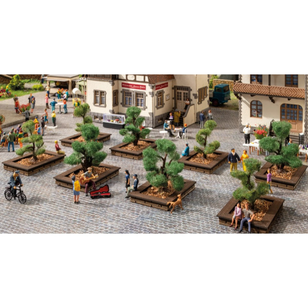 Smaller and larger bushes and shrubs can be found everywhere. Gardens, parks, terraces and even balconies are decorated and shaded with shrubs. The ornamental shrubs provide variety and diversity in your model landscape.
