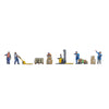 One of the workers is using a pallet truck to haul a pallet of catalogues. Next to him, another worker is collating the consignment documents. He is using a few parcels as a desk for this. Two more workers are having a conversation, pointing at positions on the shelf where they want to lift packages and pallets with the yellow lift truck. These figures are really shown to their advantage in a field warehouse, of course. Or you can put them in a warehouse whose large doors remain open so that you can look inside.