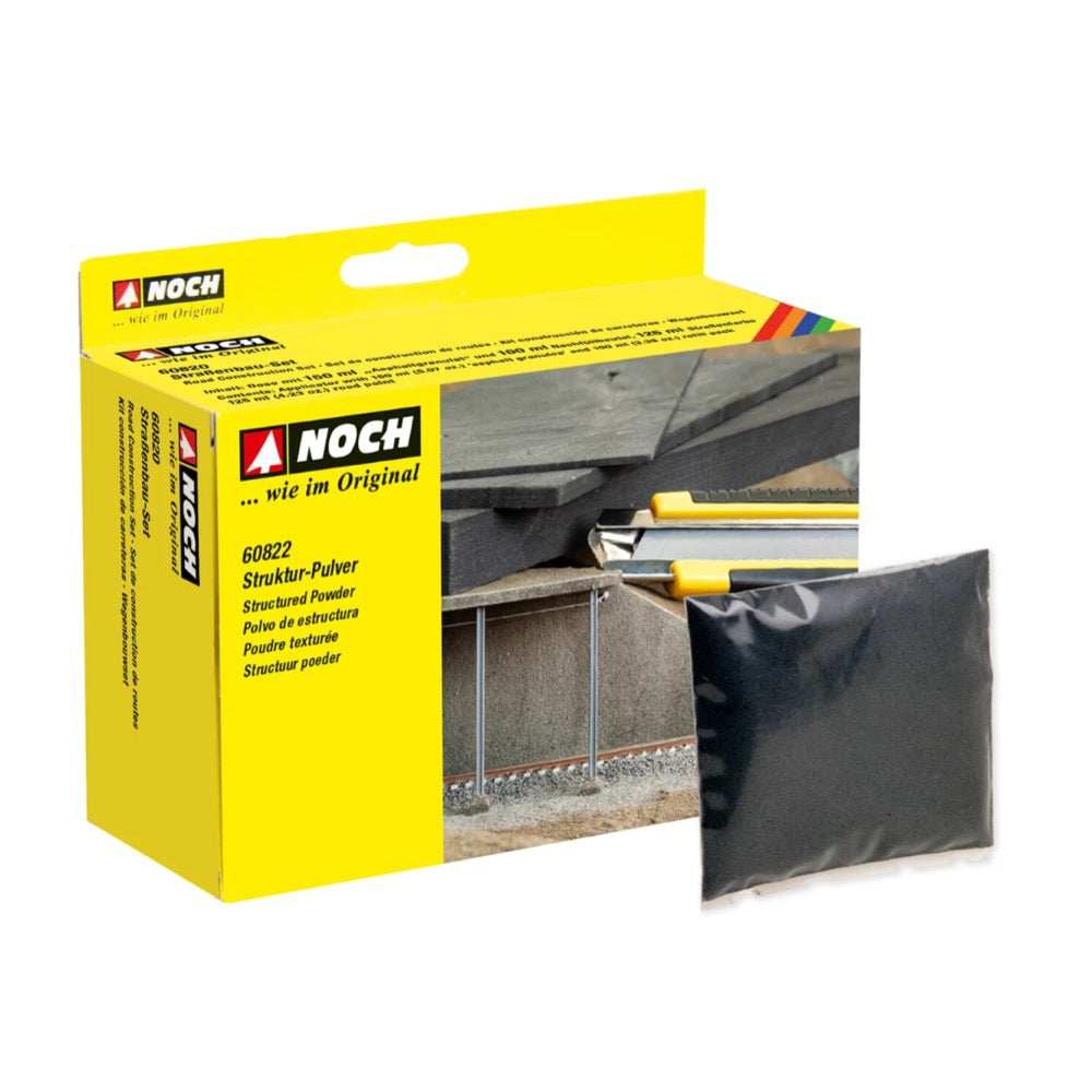 NOCH Structured Powder is extremely fine to enable you to add texture to roads, squares, walls and other components. Using a shaker, the powder is sprinkled evenly over the surface coated with NOCH Grass Glue. When the Grass Glue is dry, the surface is painted over with e.g. NOCH Structured Road Construction Paint or NOCH Acrylic Color and the area is sealed with it.
