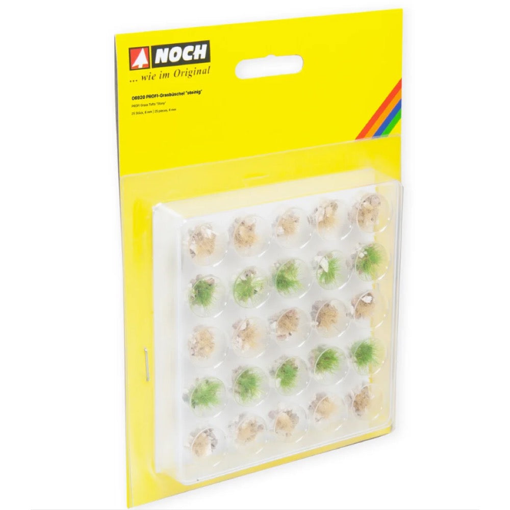 NOCH PROFI Grass Tufts are particularly realistic through the use of different grass fibres, stones, scatter and flock. This allows special tufts to be created for very special applications. The PROFI Grass Tufts are suitable for designing model railway layouts and landscapes but are also ideal for railway modellers who want to decorate a diorama or model base. The PROFI grass tufts "stony" are particularly suitable for the design of roadsides and stony slopes as well as Mediterranean fields, beaches and overgrown dunes due to the light colouring of the stones.