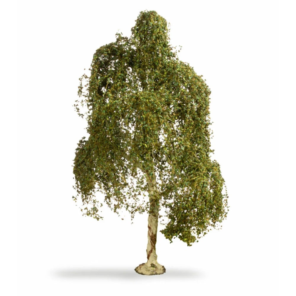 The hanging birch from the NOCH Master Tree series is a particularly slender and graceful tree species. At an appealing height of 18 cm, this detailed replica brings the typical, elegantly drooping branches of a hanging birch tree directly into your model railway landscape. The hanging birch with its slender trunks and finely branched, waving branches is a symbol of delicacy and grace. Our models reflect these qualities with up to 40 carefully handcrafted wires that represent the distinctive branches of this tree. The finely structured bark and the characteristically shaped leaves of this birch species are recreated with the greatest care and attention to detail.