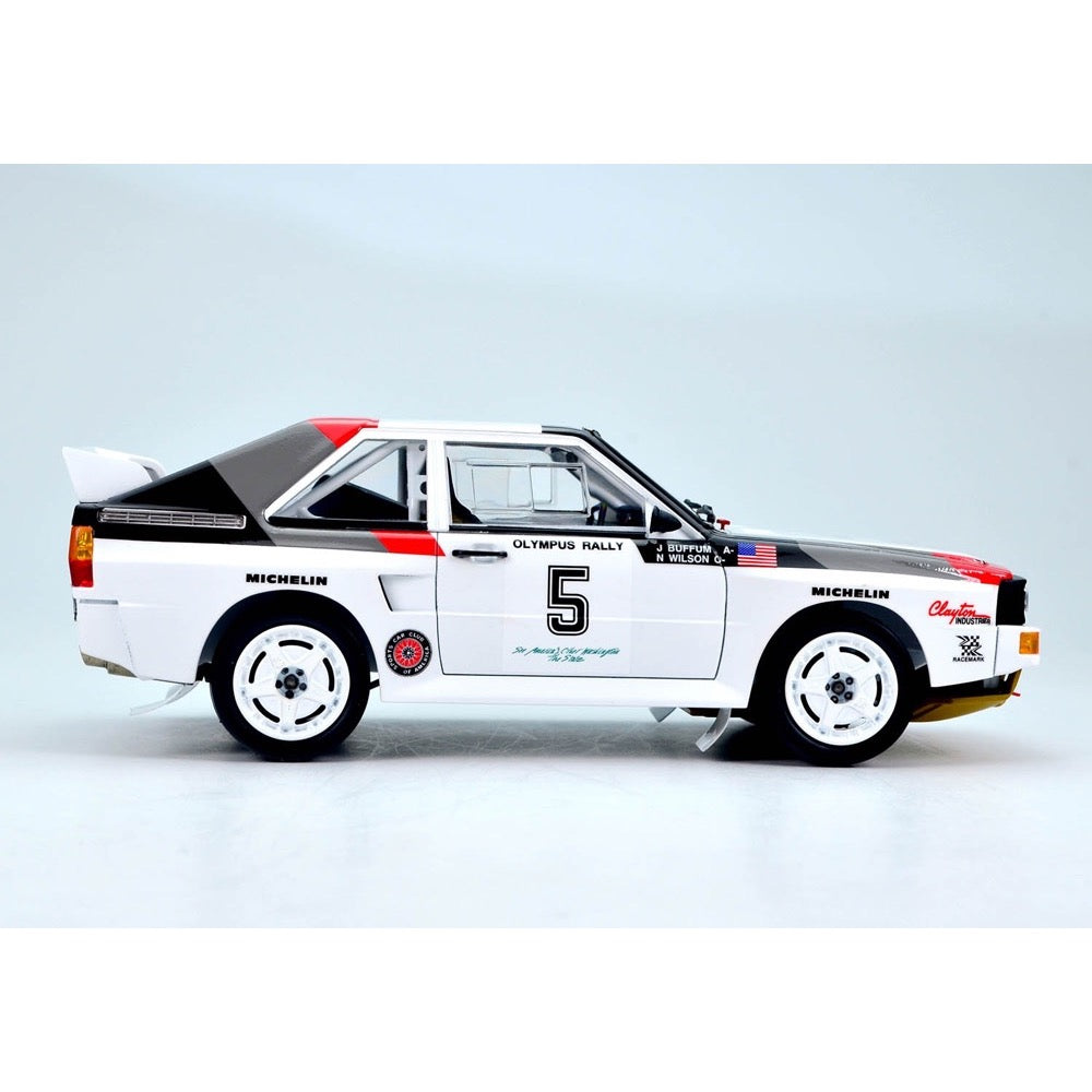 This kit from NuNu is a new mold! It reproduces the Audi Quattro S1 that Audi sent to the Olympus Rally in 1986 in great detail